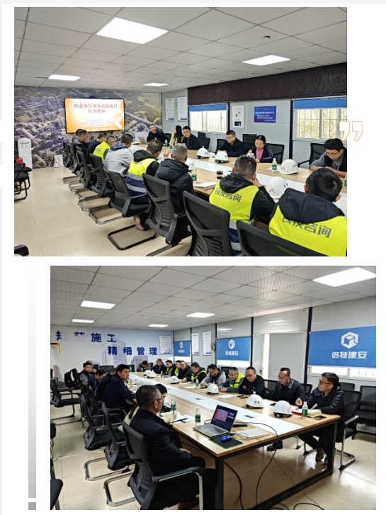 現(xiàn)場觀摩結束后,項目總監(jiān)左明勝在項目部會議室以PPT形式匯報了項目整體進展情況、當前階段成果與下階段管控計劃,并分享了自開工以來項目監(jiān)理部通過建立質量、安全、形象進度等二十多類臺賬和采用監(jiān)理日報、階段性專題會議等方式,實現(xiàn)了各類風險從分析預判到整改的全流程閉環(huán)管理。
